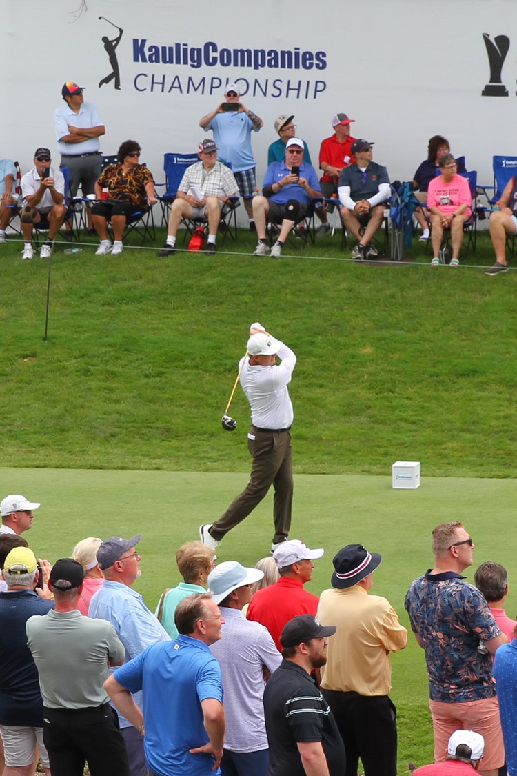 Miguel Angel Jimenez won the Kaulig Companies Championship on Sunday for his fourth PGA TOUR Champions victory of the season, rallying to force a playoff and beating Steven Alker with a 20-foot birdie putt on the second extra hole.