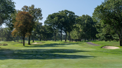 This classic par 4 features an elevated tee to a fairway below that turns from right to left. A tee shot that finishes on the right side of the fairway gives the best angle into the green that is protected by two large oak trees.