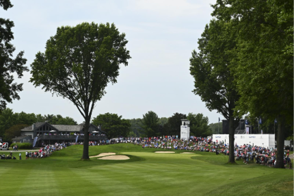 Pros think birdie on this par 5 with overhanging trees at the narrow dogleg left. A long and accurate tee shot will tempt players to reach the green in two shots. A nest of bunkers protects the most undulating green on the course.